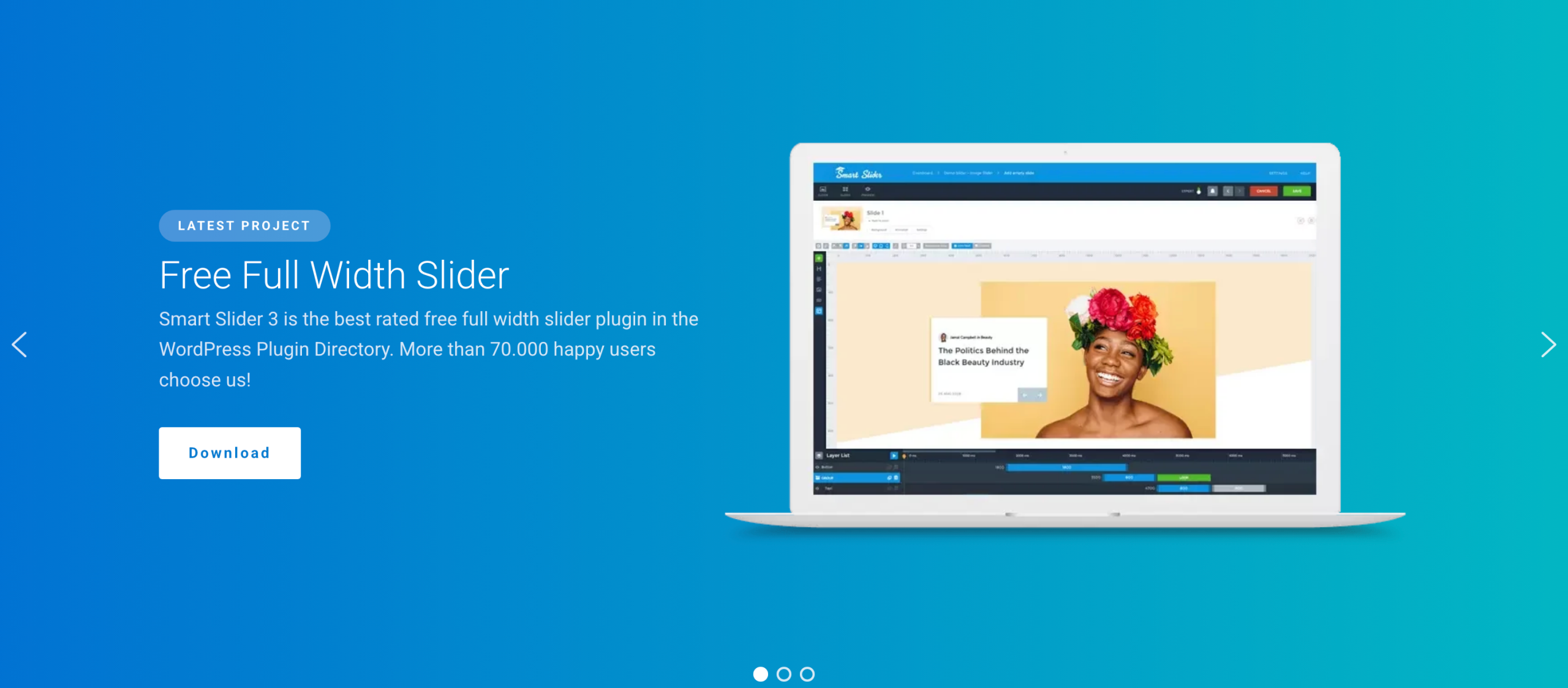 Smart Slider 3 is one of the most powerful slider plugins available today. No matter if you want to build a simple image slider or a complex layered animation, Smart Slider 3 gives you the creative freedom to do it all. You also have the flexibility to make them fully responsive and SEO-friendly.