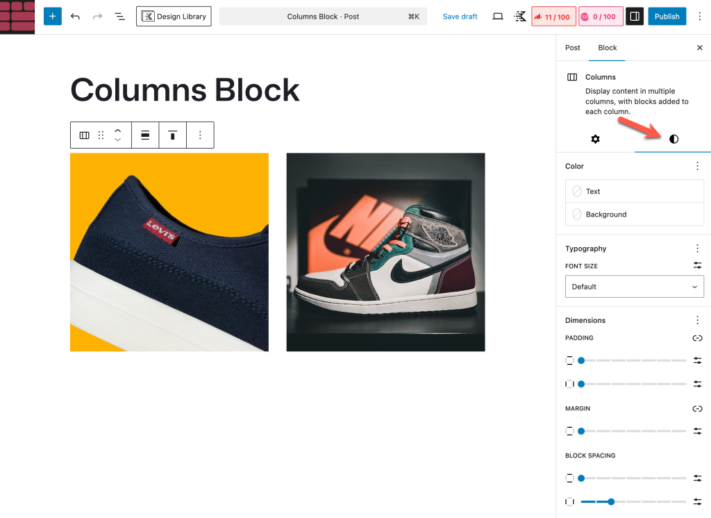 To do this, select the entire block by hitting the Gallery icon on the toolbar. Then, go to the Columns section under the Settings tab on the right sidebar.