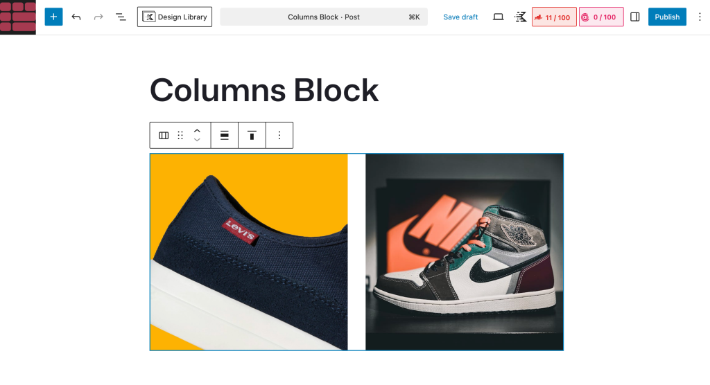 The Columns block is the simplest way to place images side by side in WordPress. It works best when you want to display two images next to each other without needing advanced layout options.