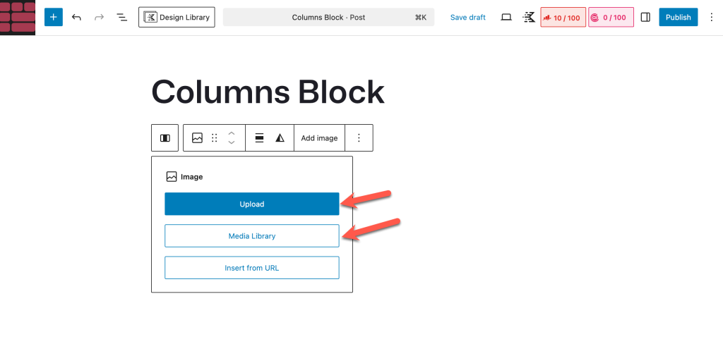 Upload a new image or select one from the Media Library.